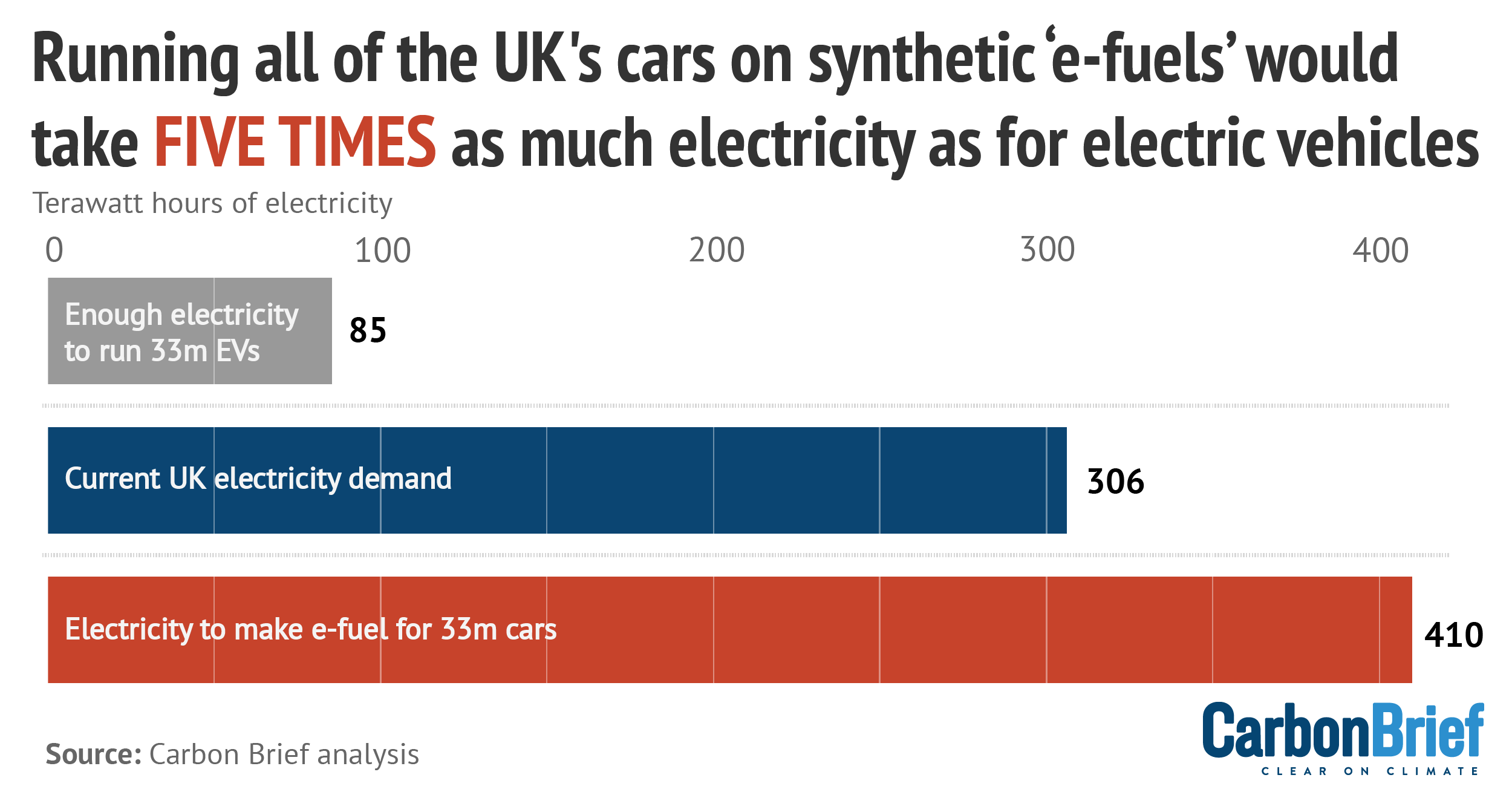 또한 생산 효율성도 매우 낮습니다. Carbon Brief의 분석에 따르면 e-연료를 사용해 자동차를 운행하려면 전기차에 비해 최소 5배의 전기가 필요합니다.